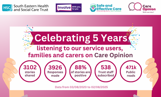 The 3rd August 2025 marks a huge step regionally with Northern Ireland as its 5 years of Care Opinion within Health and Social Care Trust.